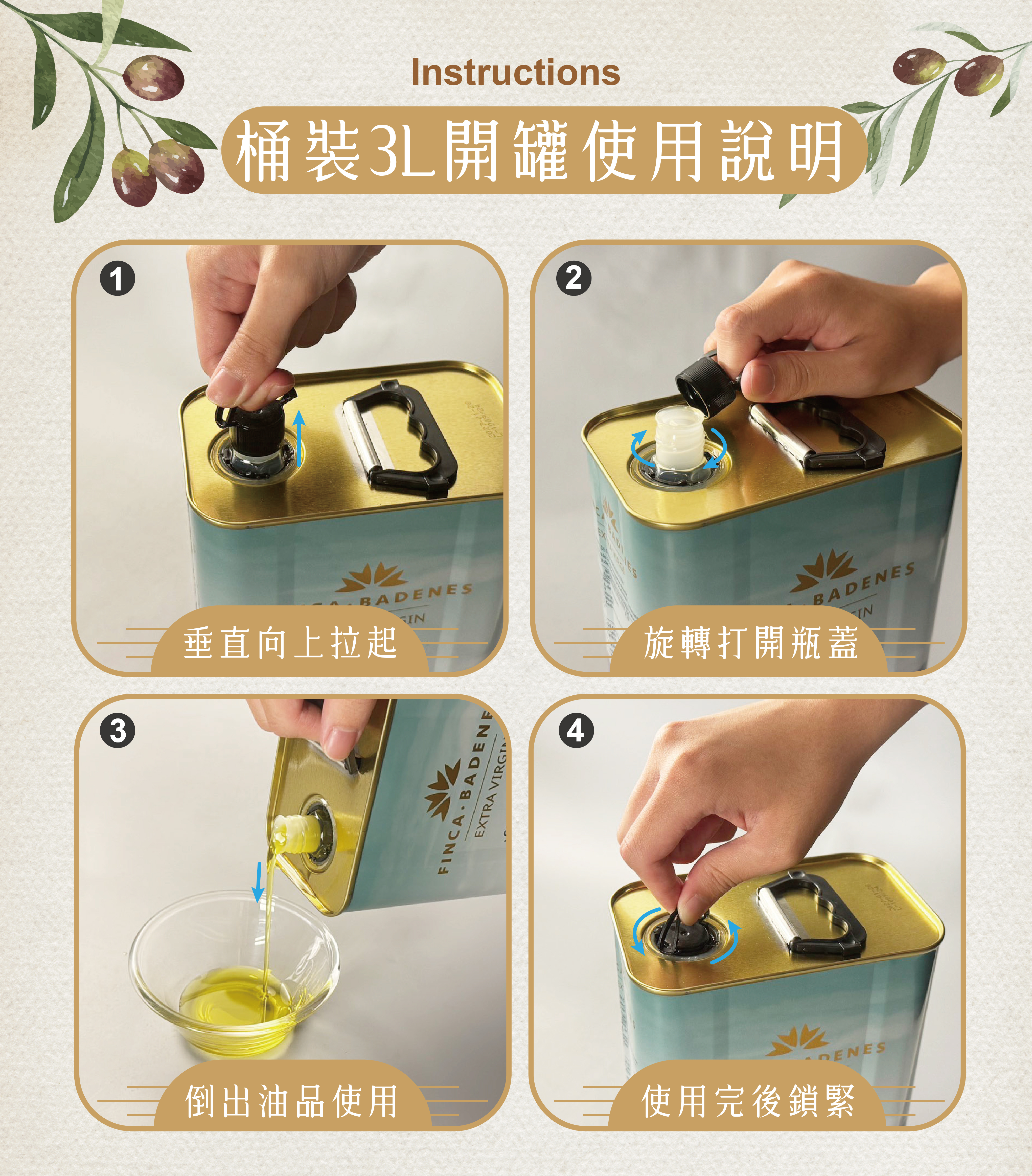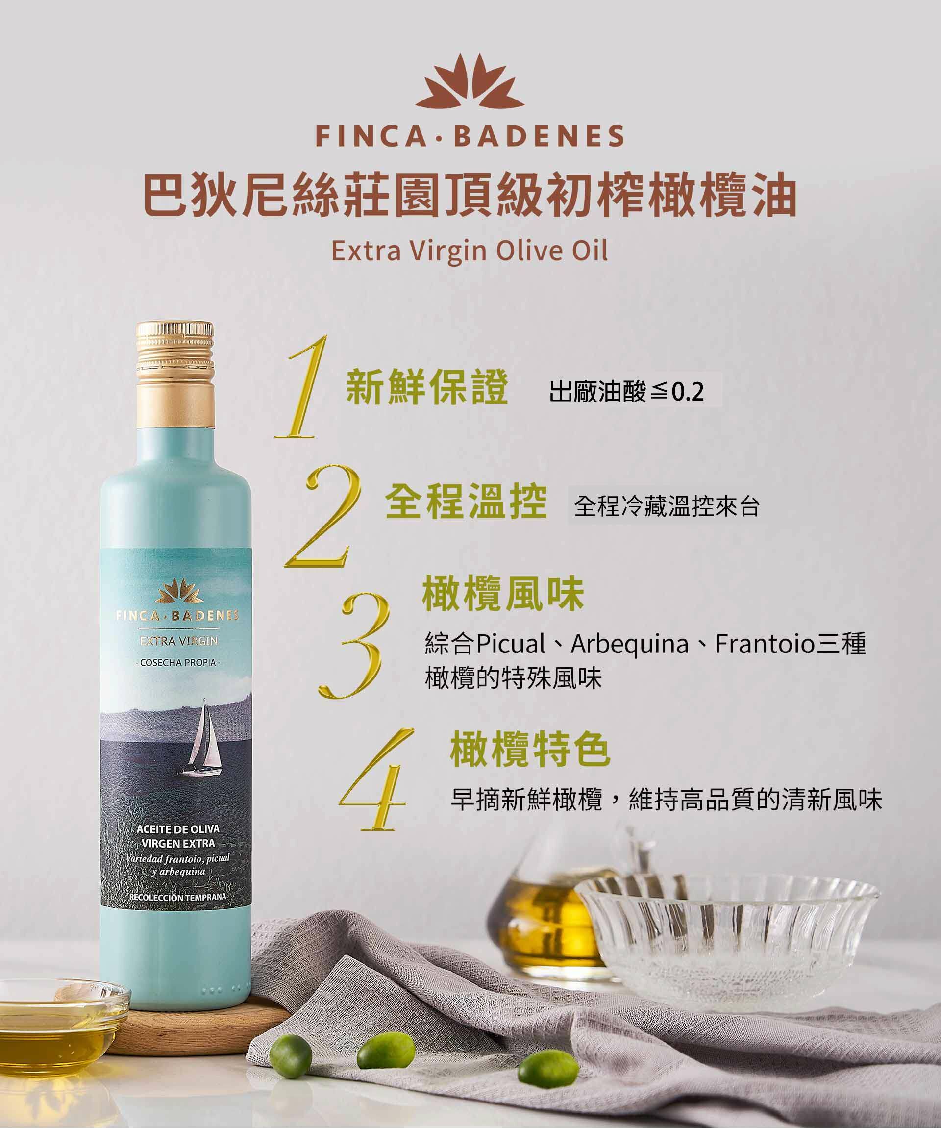 綜合Picual(皮夸爾)、Arbequina(雅貝金娜)、Frantoio(法蘭朵),三種橄欖的特殊風味