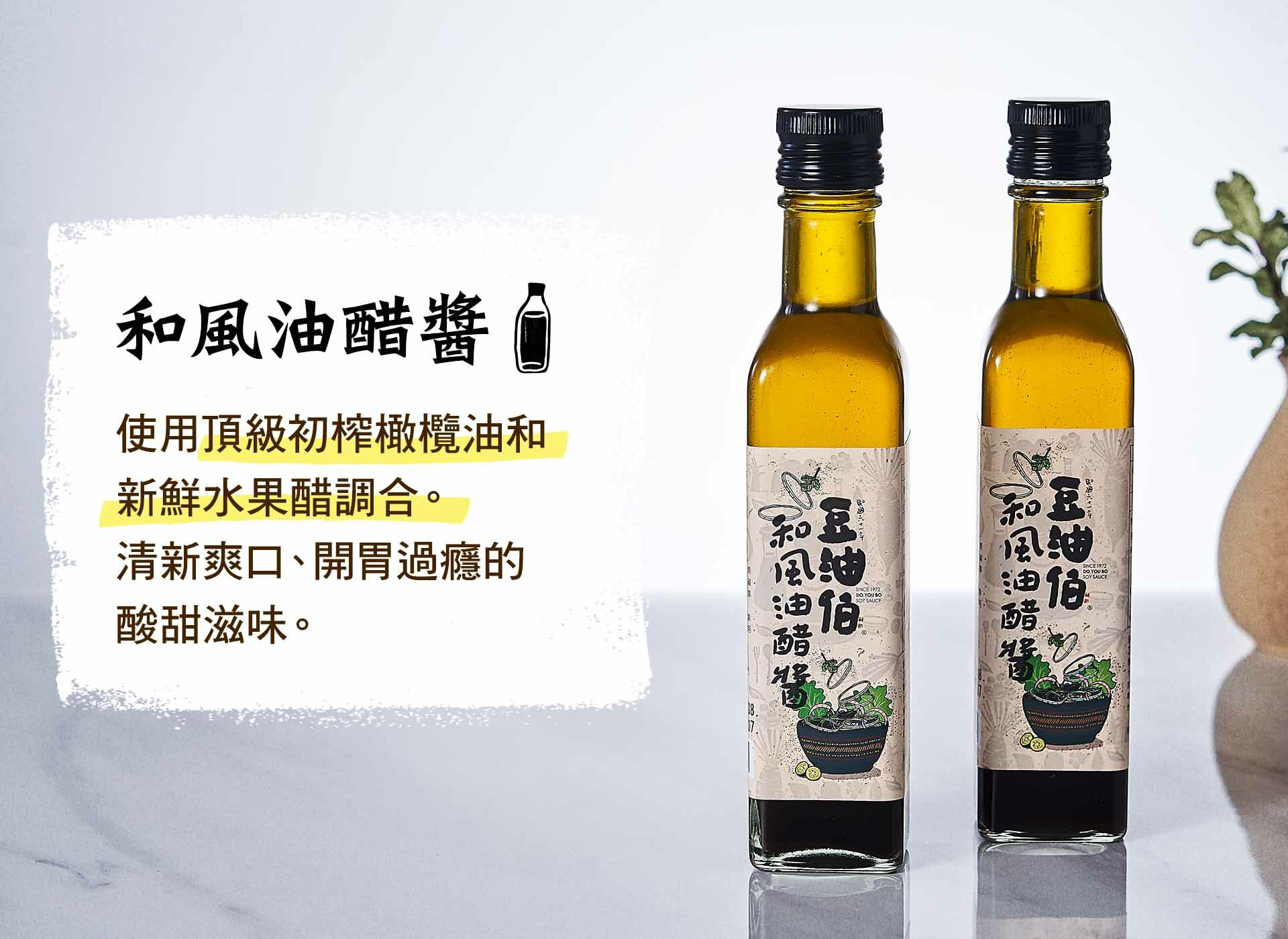 使用頂級初榨橄欖油和新鮮水果醋調合,獨家好味道。